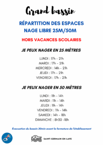 RÉPARTITION DES ESPACES DE NAGE LIBRE 25/50 M